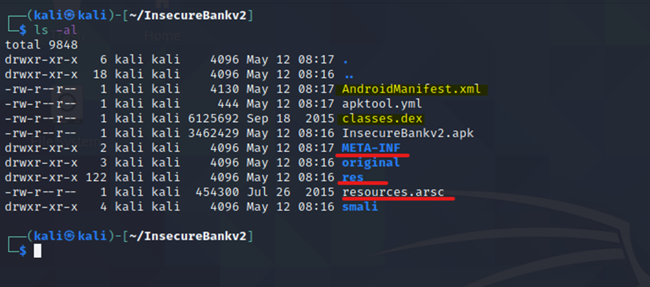 After extraction, the resulting folder contains all the key files and directories mentioned above. This allows security researchers to inspect and analyze the application for vulnerabilities such as hardcoded credentials, insecure API calls, or excessive permissions.