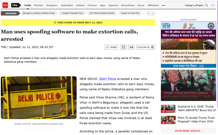 Delhi Man’s Extortion Calls Using Spoofing Software (2023)