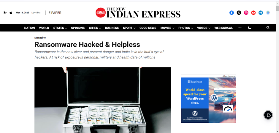 - A major Indian company fell victim to a ransomware attack, where hackers encrypted critical data and demanded a hefty ransom.